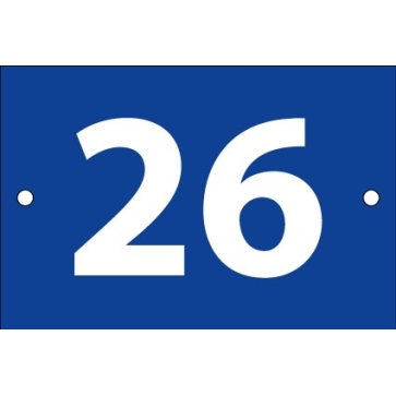 Numéro émaillé 15x10cm fond bleu RAL 5002 écriture blanche sans liseret 4 trous avec oeillets