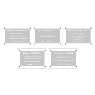 plaque dibond argent brossé épaisseur 3mm 100x60mm impression numéro quantité : 6