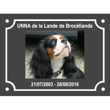 Plaque aluminium laqué blanc impression quadri 20x15cm 4 trous 4 vis et cabochons argent diamètre 12mm