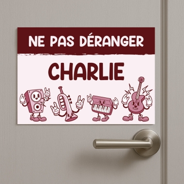 Plaque de porte pour enfant avec des motifs de musique, parfait si votre enfant est un petit musicien.